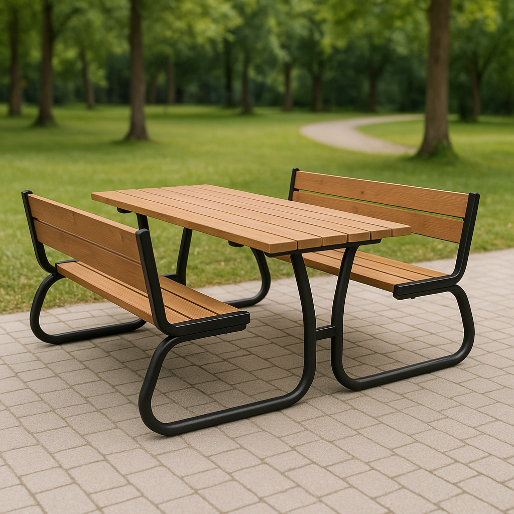 Setul de mobilier Masă + 2 Bănci este ideal pentru parcuri, zone de odihnă, terase, curți private și spații comerciale. Construcția solidă din metal vopsit și lemn tratat asigură durabilitate pe termen lung, rezistență la intemperii și un aspect modern.